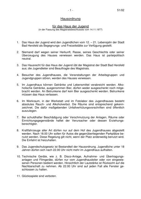 Hausordnung für das Haus der Jugend - Bad Hersfeld