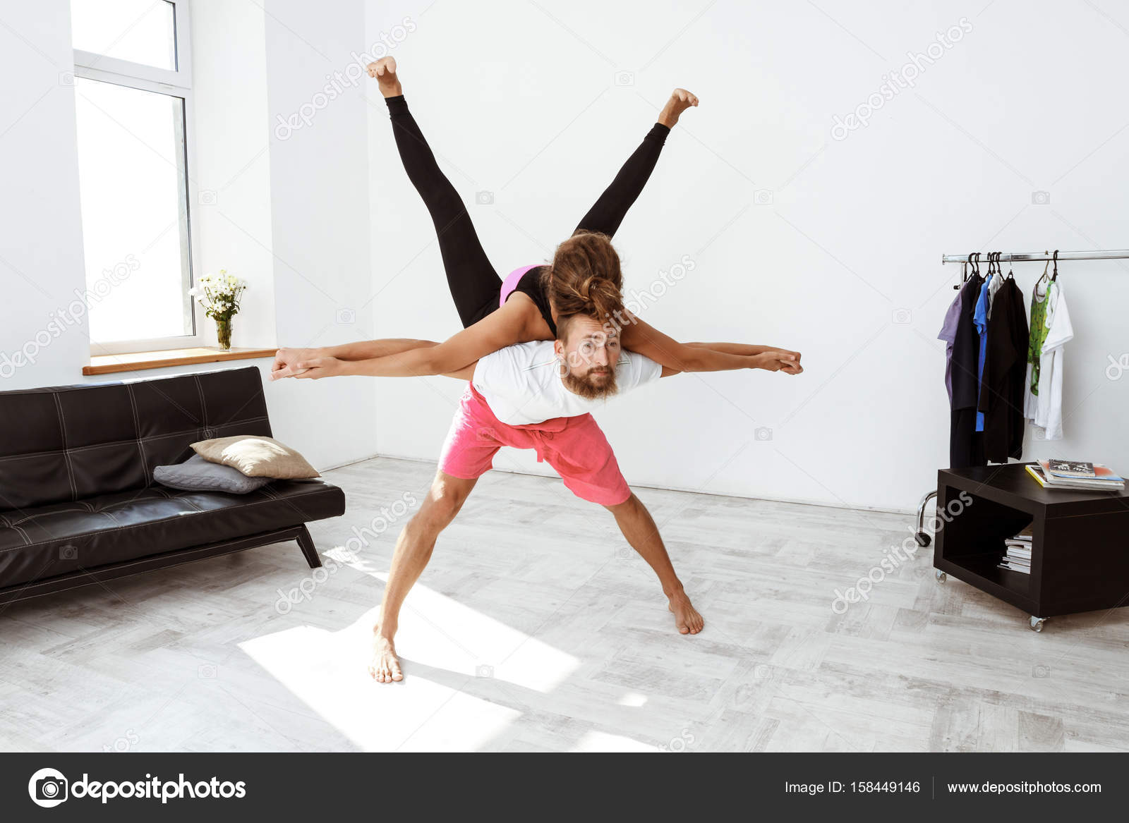 Partner-Yoga Asanas Der Jungen Schönen Sportiven Paare übende Zu Hause Stockfoto - Bild von ...